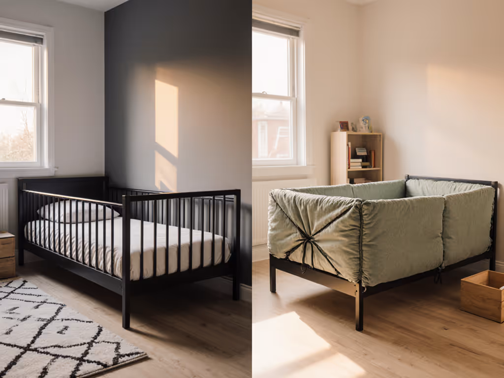 For the primary audience, urban parents in compact apartments and condos, footprint matters. Bed rails add visual bulk. Their rigid mesh panels extend upward 15-20 inches, making the bed look larger and drawing the eye[4]. In a 200-square-foot bedroom shared by two children, that visual dominance fuels clutter perception and overstimulation at bedtime.